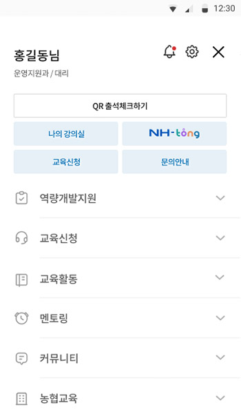 농협 계열법인의 통합 교육 시스템의 자기주도적 학습을 지원하는 것에 주안점을 두어 설계하였으며, 이를 위해 사용자 편의성과 인터랙티비티를 중심으로 디자인하였습니다. 직관적인 인터페이스를 사용하여 사용자가 쉽게 시스템을 이용 할 수 있도록 하고, 인터랙티브 디자인으로 사용자에게 학습의 흥미를 이끌 수 있습니다.